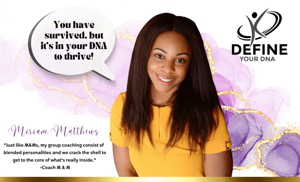 Define Your DNA is a transformational coaching service offered to women across the globe. Miriam has assisted in changing the lives of over 400 women thus far and is continuing to blaze this path of helping women Define their DNA.